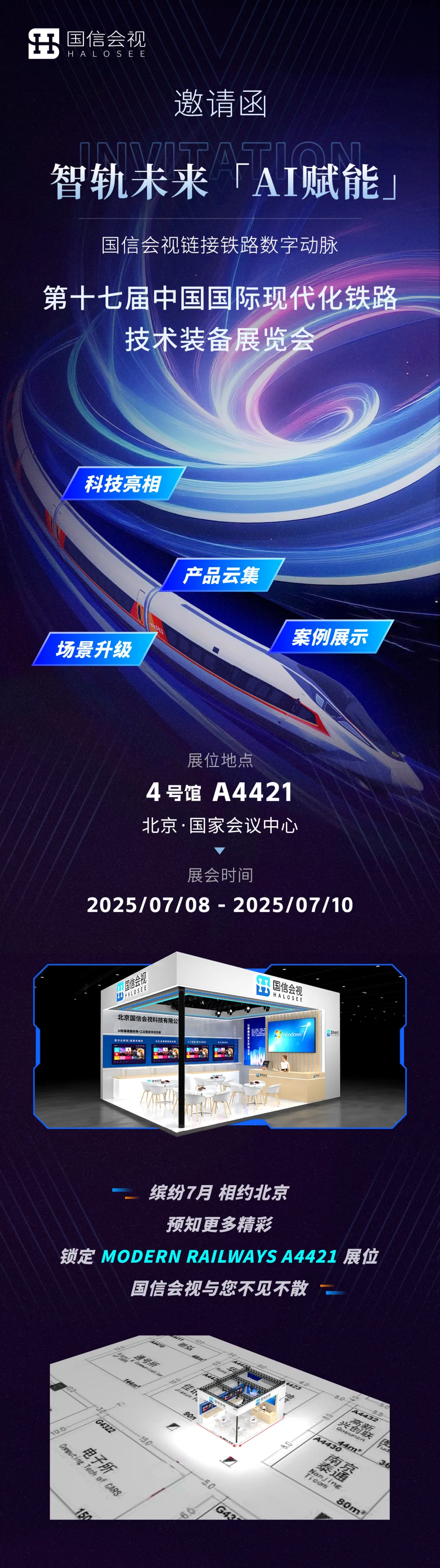 在科技日新月异的今天,铁路技术装备领域正迎来一场盛大的科技盛宴 —— 第十七届中国国际现代化铁路技术装备展览会即将拉开帷幕。作为亚洲规模最大、国际影响力深远的铁路行业展会,这里汇聚了全球前沿技术与顶尖装备,是铁路领域交流合作、洞察趋势的绝佳平台。而国信会视,也将带着一系列创新解决方案闪耀登场,为您呈现智慧铁路的无限可能。